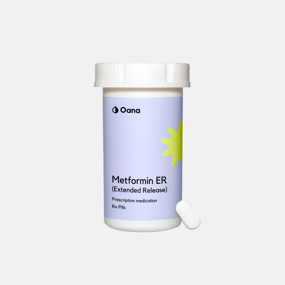 Metformin ER (extended release) is the first-line treatment for insulin resistance in PCOS. By improving how your body responds to insulin, it helps lower androgen levels — addressing the root cause of symptoms like irregular periods, excess hair growth, weight gain, and acne.